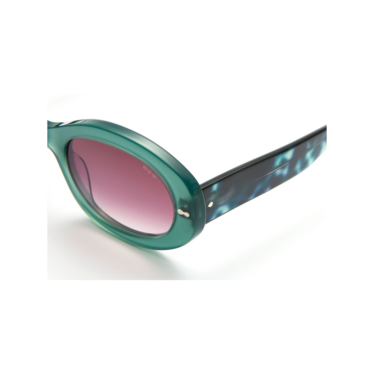 Gafas de sol Cottet Barcelona Sarrià 539 en verde translúcido con lente degradada púrpura. Montura expresiva y moderna con carácter.